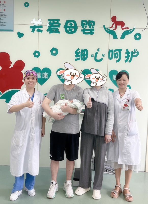 此后,刘女士认真做好胎儿监测和产前检查。可到了预产期,胎儿却毫无动静,刘女士再次陷入不安。产科团队结合她的身体状况,先后采用上前列腺素药物、宫颈球囊、人工破膜及缩宫素引产等多种催产方式,尝试引导阴道分娩。分娩过程中,刘女士一度对顺产失去信心,提出剖宫产请求。关键时刻,肖玲和助产士廖洲凭借对刘女士孕期状况的全面了解和丰富的临床经验,向她讲解顺产的可能性及优势,并进行细致的心理疏导,逐步增强刘女士顺产的信心。终于,一声清脆的啼哭声响彻产房,刘女士顺利自然分娩。