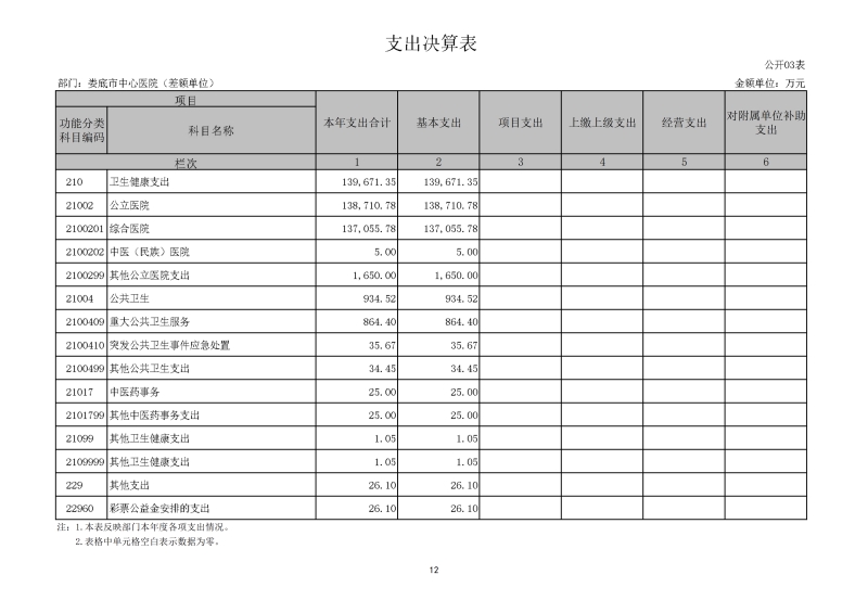7、卫生健康支出(类)公立医院(款)综合医院(项)。