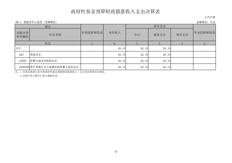 2024年度政府性基金预算财政拨款收入26.10万元;年初结转和结余0.00万元;支出26.10万元,其中:基本支出26.10万元,项目支出0.00万元;年末结转和结余0.00万元。具体情况如下: