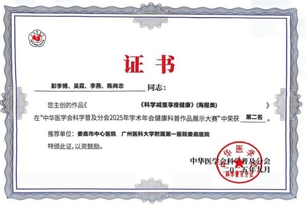在这场科普盛宴中,我院表现出色,获多项大奖。由肿瘤内科彭李博、吴霞、李燕、陈尚忠同志主创的作品《科学减重 享瘦健康》(海报类)获年会健康科普作品展示大赛第二名;由彭李博、李燕、陈尚忠同志主创的作品《抗癌“新武器”——癌症的免疫治疗》获年会健康科普征文大赛第三名;由杨琼、陈小华、魏桂蓉、李元林、罗婵同志主创的作品《小小的胶囊 大大的学问》获年会健康科普作品展示大赛第三名。
