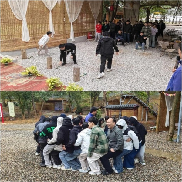 当日下午,在鹅婆山拓展训练现场,学员们踊跃参与各类团队趣味游戏。“钉子精神”通过专注投入、攻坚克难的任务设置,培养学员如钉子般扎根岗位的职业精神;“信任坐”则在相互支撑、彼此依靠的协作中,深化团队成员间的信任与默契。各小组奋勇争先、密切配合,在激烈有序的比拼中展现出极强的团队凝聚力与执行力。