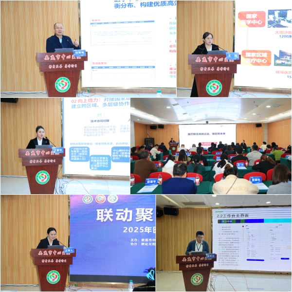 为让群众在家门口享受到更优质的医疗服务,推动区域医疗实现“资源共享、优势互补、协同发展”,近日,由我院主办,新化天和医院协办的2025年医联体工作联络员培训会在我院召开。我院党委副书记、院长杨吉军,副院长彭福森出席会议。来自广州、邵阳、娄底等地的医院管理专家,以及我院相关科室负责人、医联体工作联络员齐聚一堂,围绕“如何通过更高效的医联体协作服务患者”共学共进。