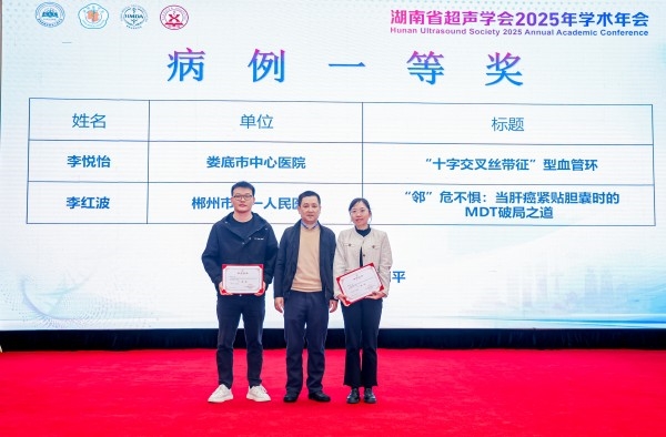 近日,湖南省超声学会2025年学术年会暨第二届湖南省超声医学青年学术论坛在长沙开幕。我院超声医学科团队凭借专业实力,在大会主持点评、专题授课及病例比赛三个关键环节中展现风采,并在病例比赛中斩获一等奖。