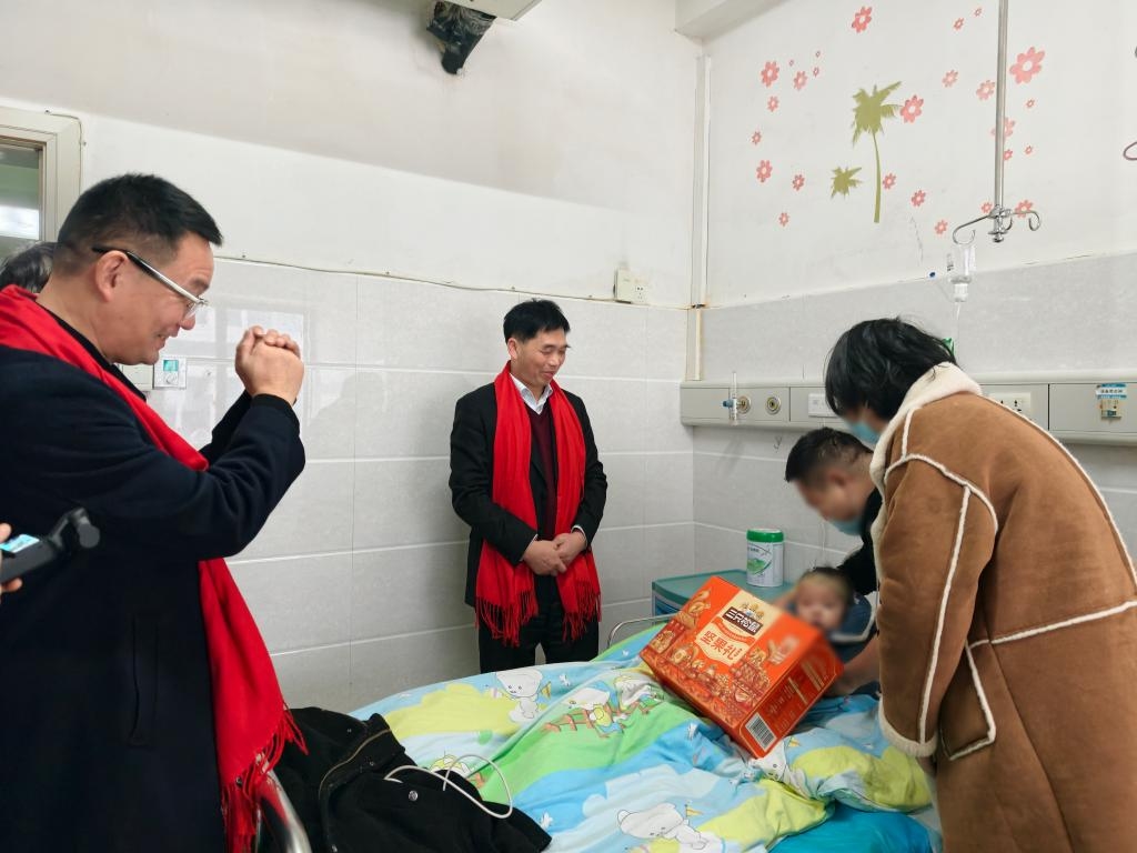 院领导的关怀同样温暖着年幼的患者。在儿科一病区,他们看望了仅9个月大的患儿峥峥,为他送上精心准备的新年礼物。王澍详细询问孩子的病情和治疗进展,向家长传递医院的关切与祝福:“孩子是家庭的希望,也是社会的未来,我们一定会尽全力守护他的健康。”他叮嘱医护人员要以最温暖的爱心和最专业的技术,陪伴每一个孩子度过难关。