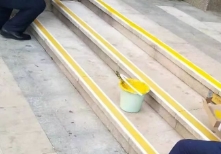 台阶安全提示线要求:黄色,喷漆或者涂刷,厚度不低于1.0mm,标线宽度不低于5cm,包设计、人工、运输,样图如下: