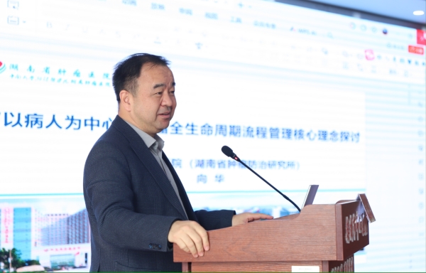 在主题讲座环节,祝益民教授、向华教授聚焦行业前沿与临床实践,融合政策解读与创新洞察,分别以《人工智能时代的专科建设与发展》《“以病人为中心”肿瘤全生命周期流程管理核心理念探讨》为题进行了深入讲解,内容系统详实。此外,会议还专题学习了《紧密型城市医疗集团与矩阵式医联体实践路径》,通过解读协同发展机制、资源整合模式等关键内容,为各级医疗机构打破协作壁垒、提升区域医疗服务整体效能,提供了可落地、可复制的行动方案。主题讲座由娄底市中心医院党委副书记、院长杨吉军主持。