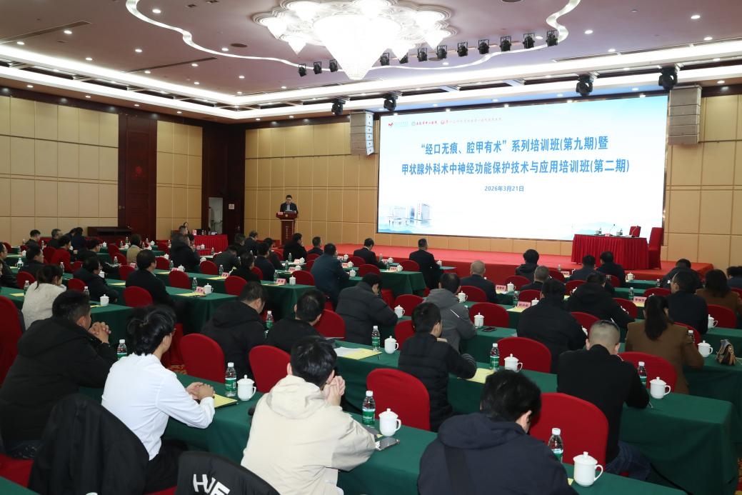 3月20日至21日,由湖南省肿瘤医院、娄底市中心医院(广州医科大学附属第一医院娄底医院)联合举办的“经口无痕、腔甲有术”系列培训班(第九期)暨甲状腺外科术中神经功能保护技术与应用培训班(第二期)在娄底举办。会议特邀中国人民解放军总医院、中南大学湘雅医院、湘雅二医院、湖南省人民医院、湖南省肿瘤医院等国内甲状腺外科知名专家前来授课,来自省内外各地医疗机构甲状腺外科相关专业技术骨干100余人齐聚娄底,共赴学术盛宴、共探技术前沿。